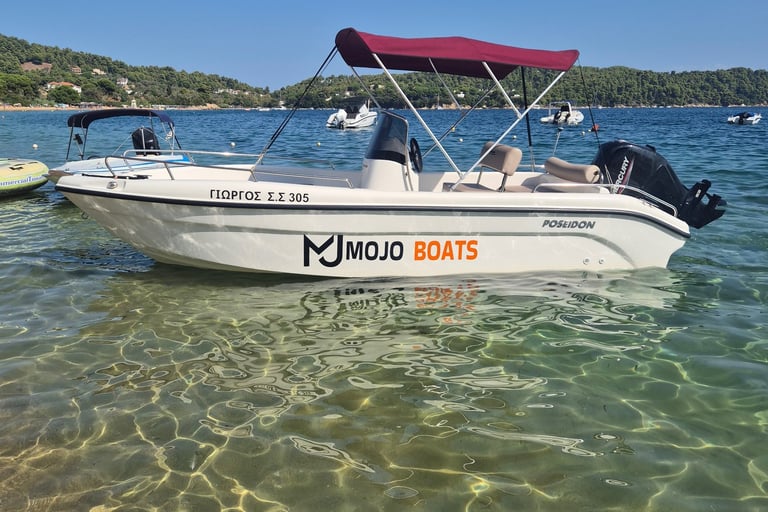 Discover the ultimate water adventure with Mojo Water Sports on the beautiful island of Skiathos! Whether you're seeking a thrilling day on the water or a relaxing cruise along the stunning coastline, our boat rentals are perfect for all kinds of explorers.